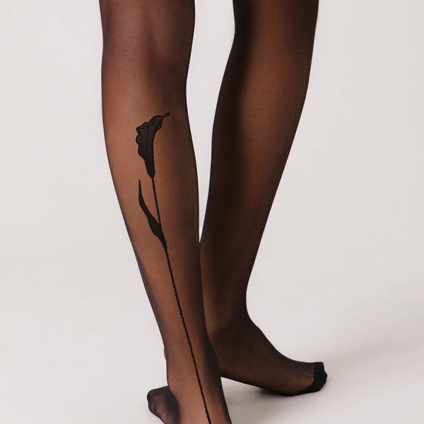 Meet the world’s most comfortable, breathable tights ever — now with an unexpectedly romantic opaque calla lily blooming up the calf. A little love story, sewn right in.